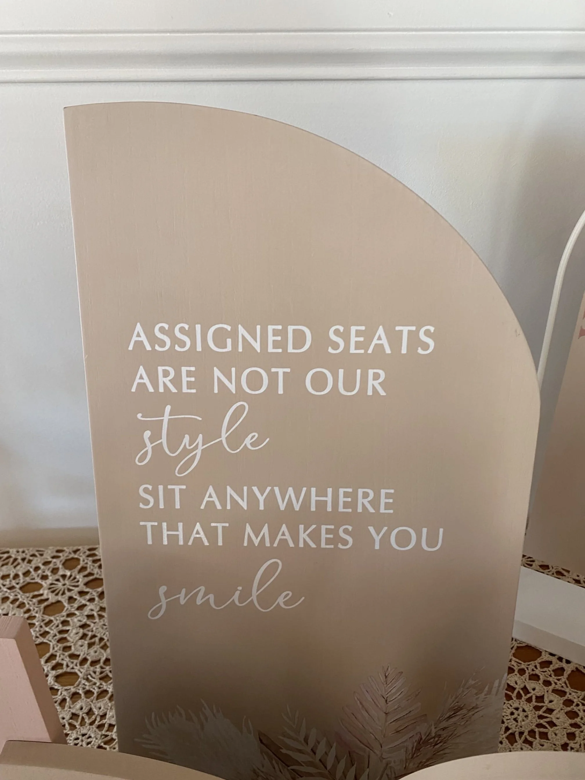 Decorations › Assigned Seat Sign - Blush Image 1 of 1 Assigned Seat Sign - Blush $0.00 Qty 1 Quantity: Add To Cart Added! Qty 1